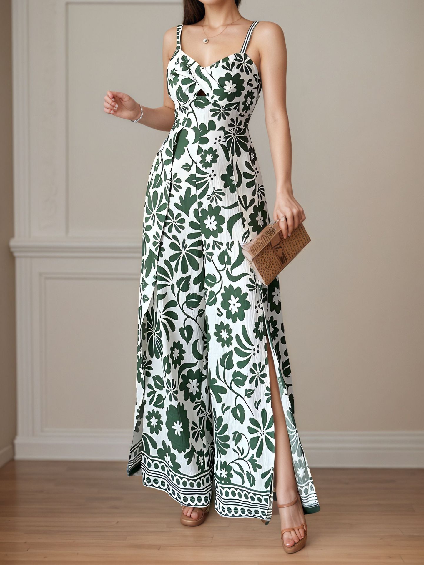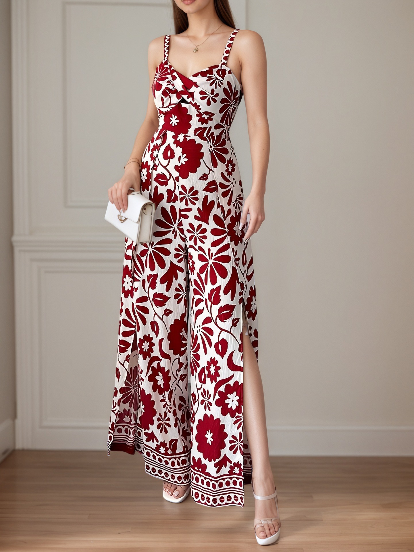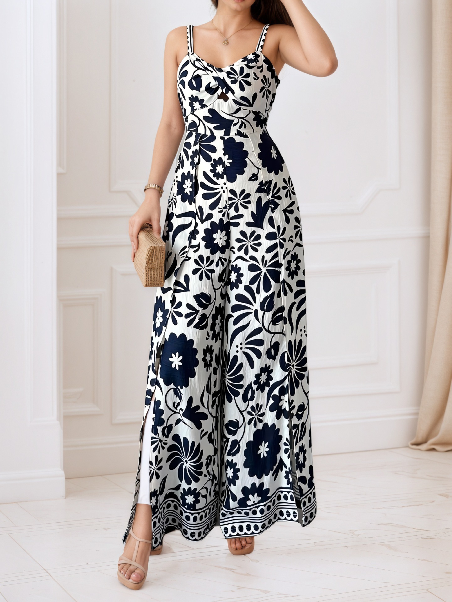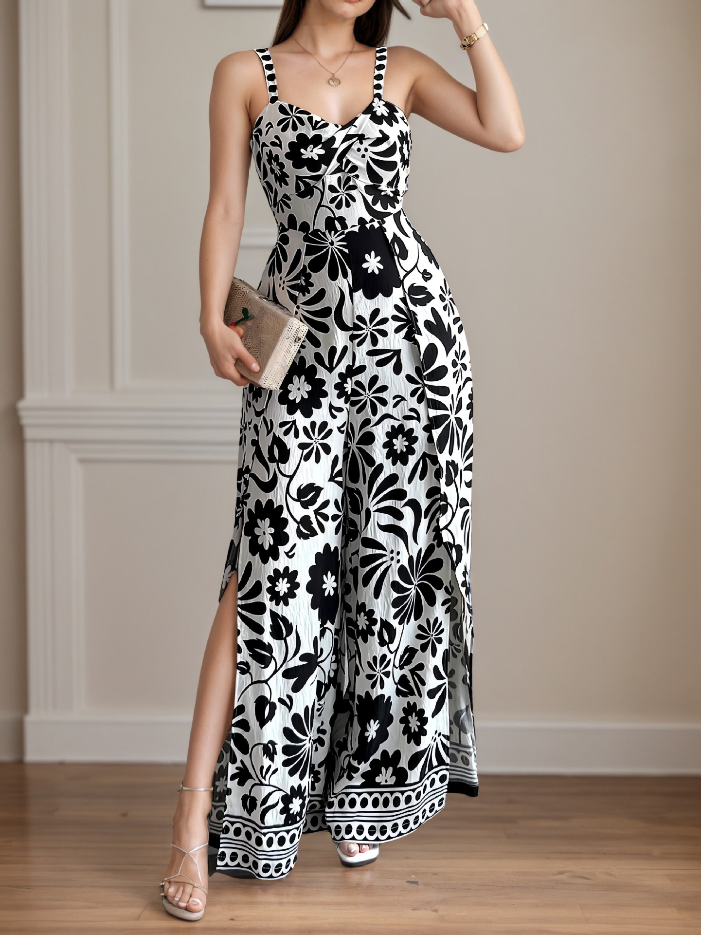Elegant Womens Floral Print Wrap-Style Jumpsuit With Straps