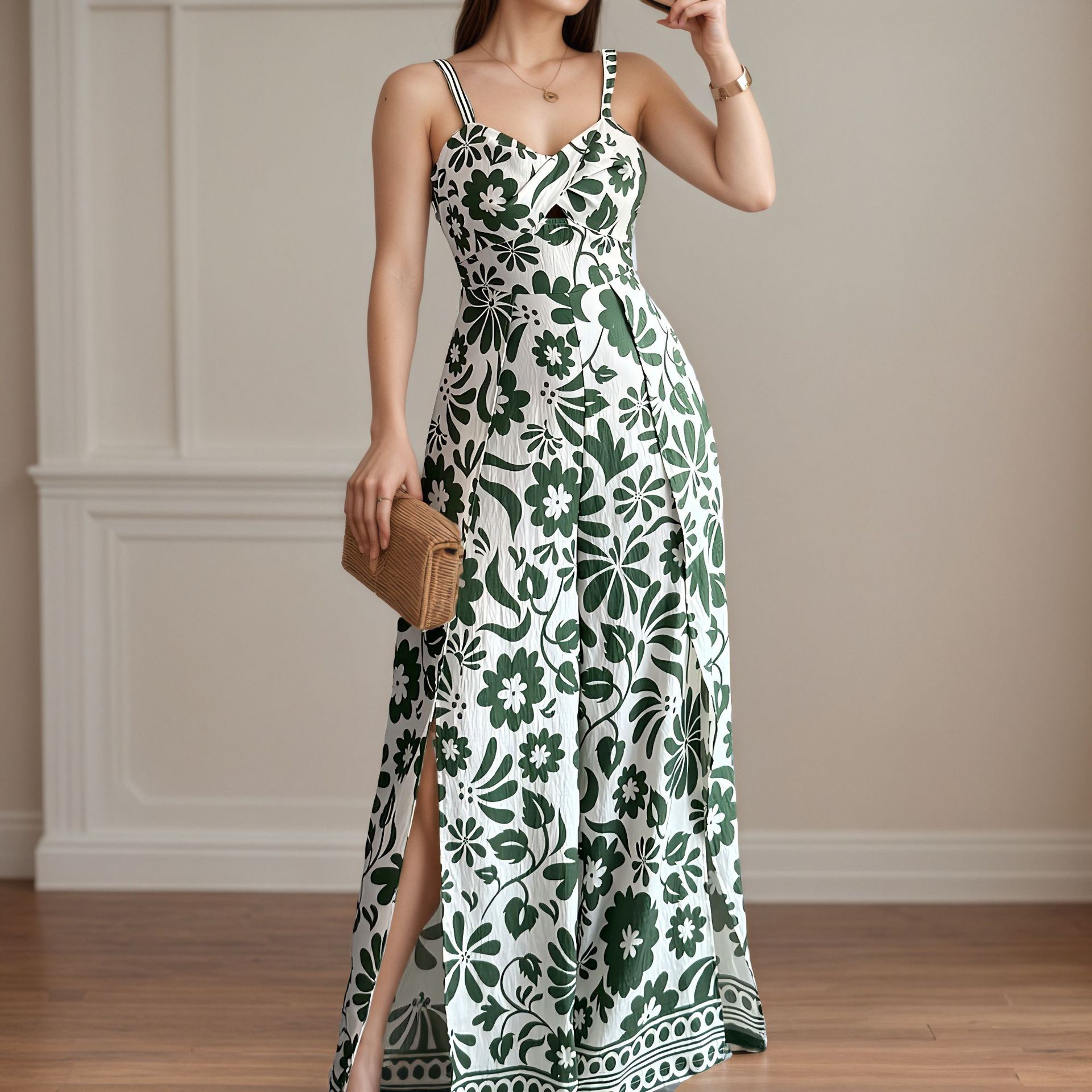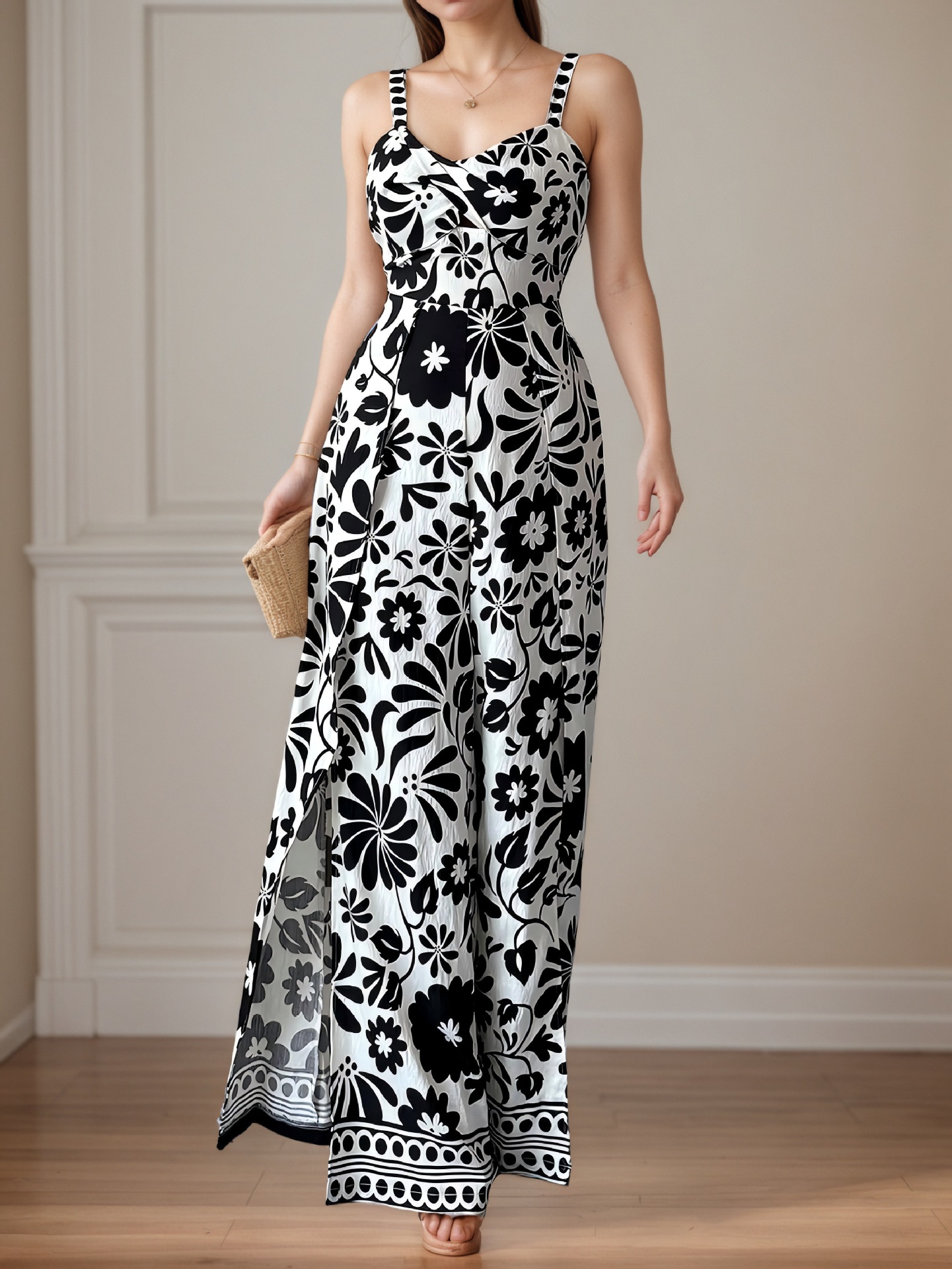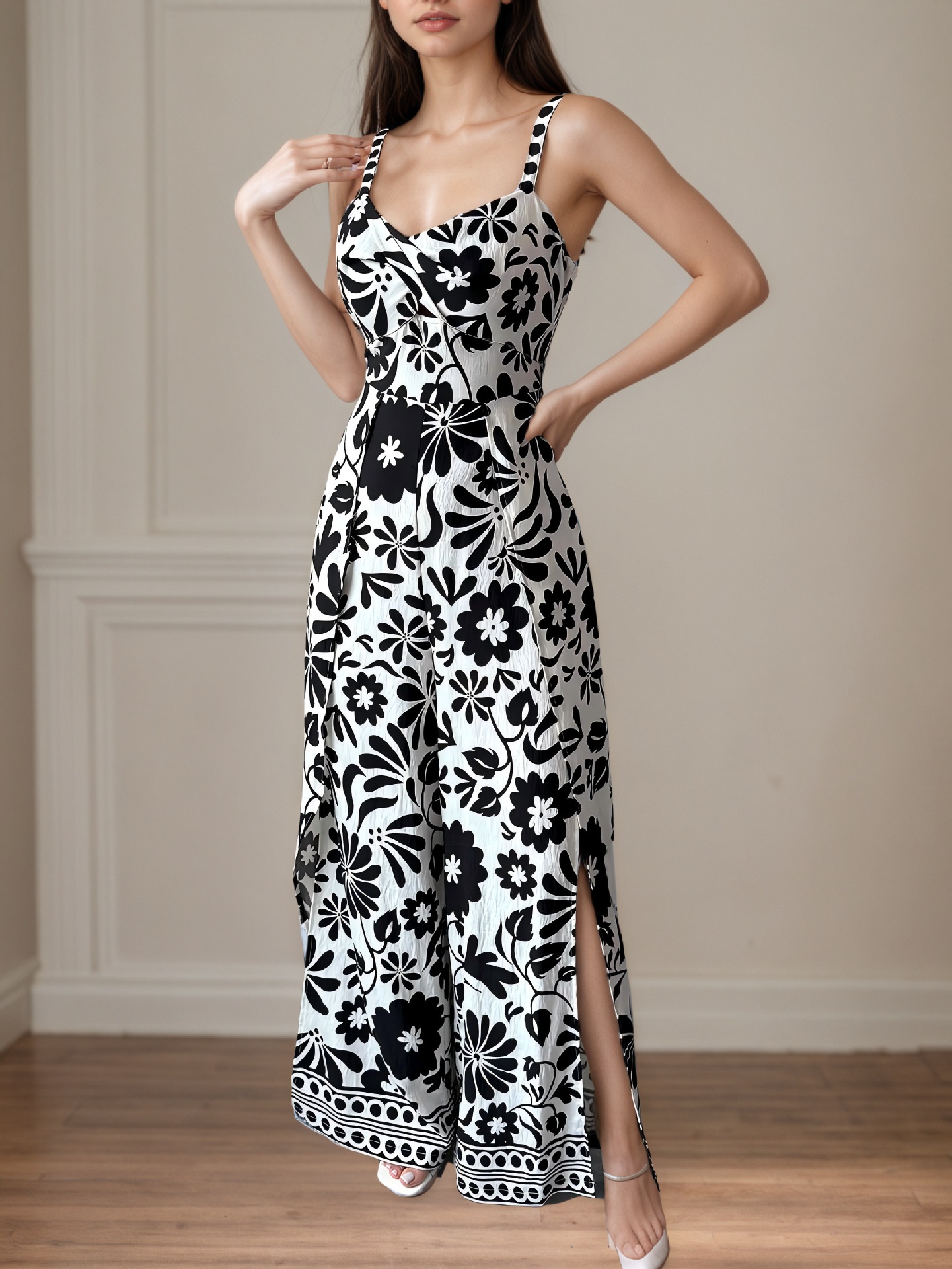 Elegant Womens Floral Print Wrap-Style Jumpsuit With Straps