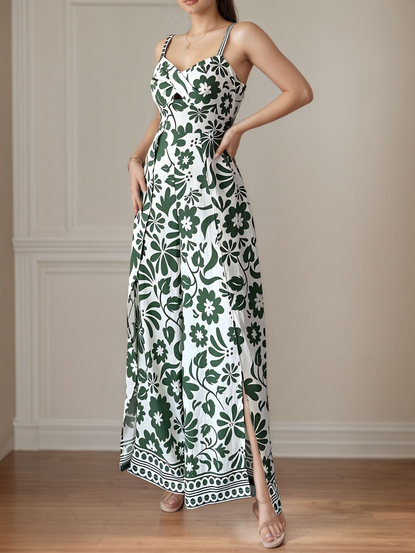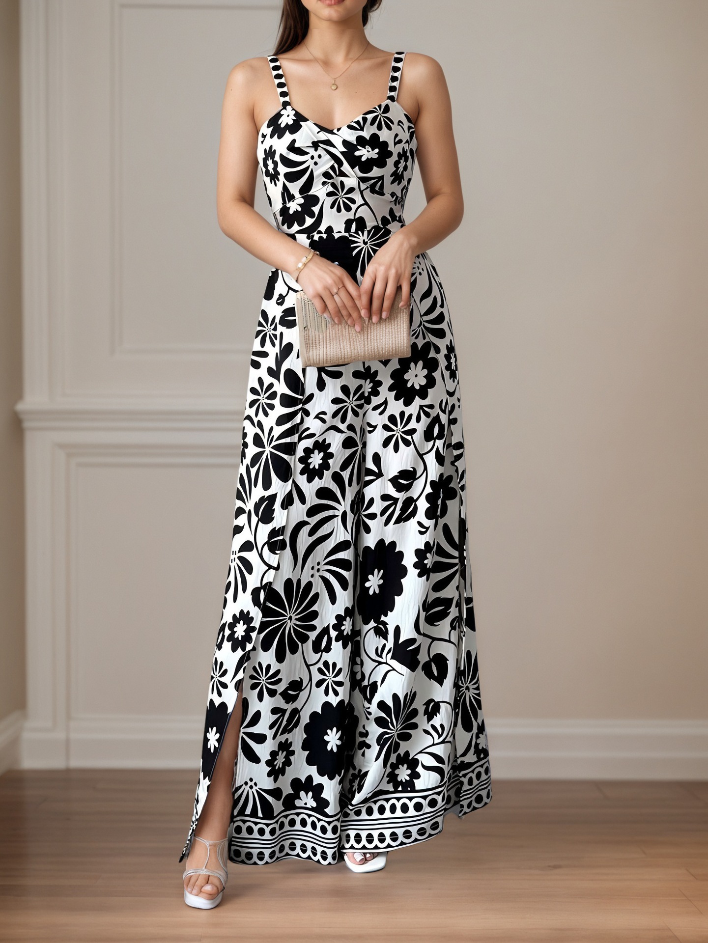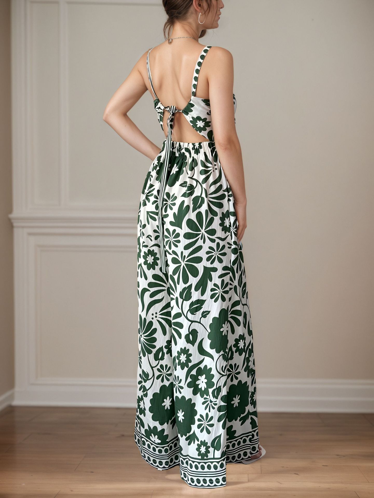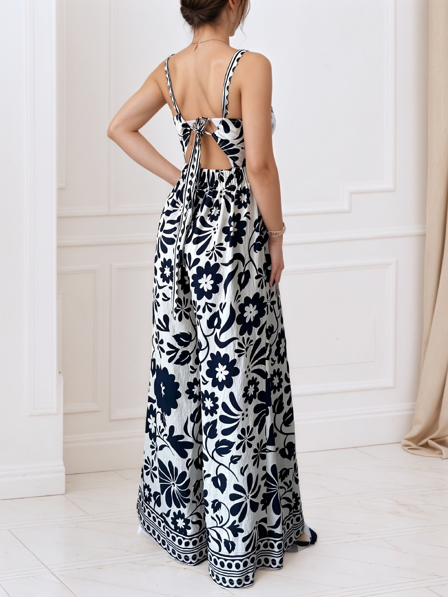 Elegant Womens Floral Print Wrap-Style Jumpsuit With Straps
