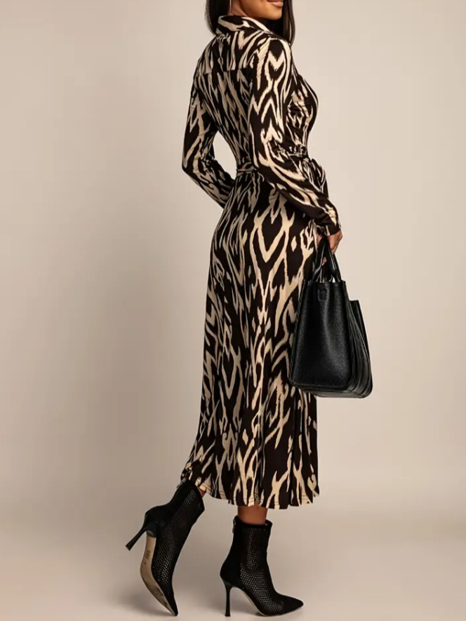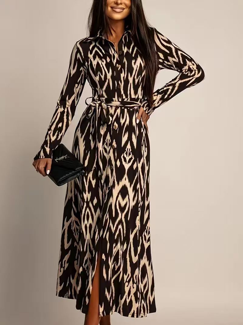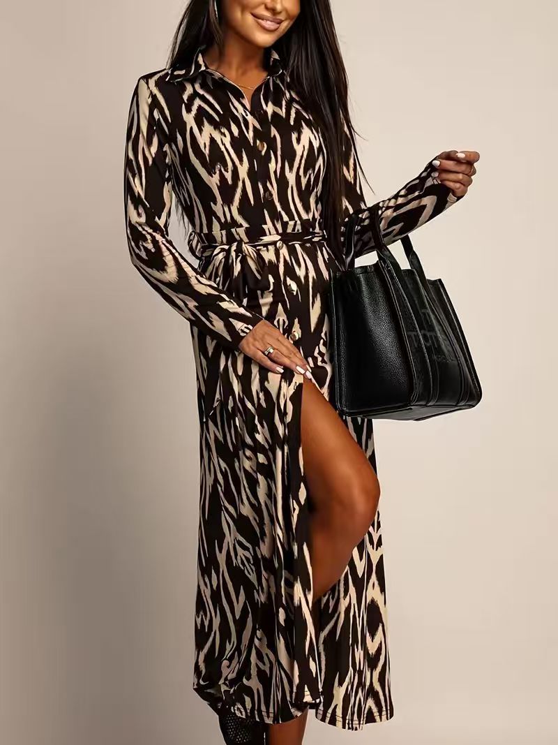 Womens Leopard-print Long-sleeve Dress With Tie-detail